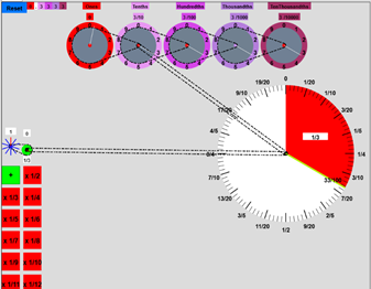 decimal units of 100ths and 10ths, a set of fraction buttons indicating that